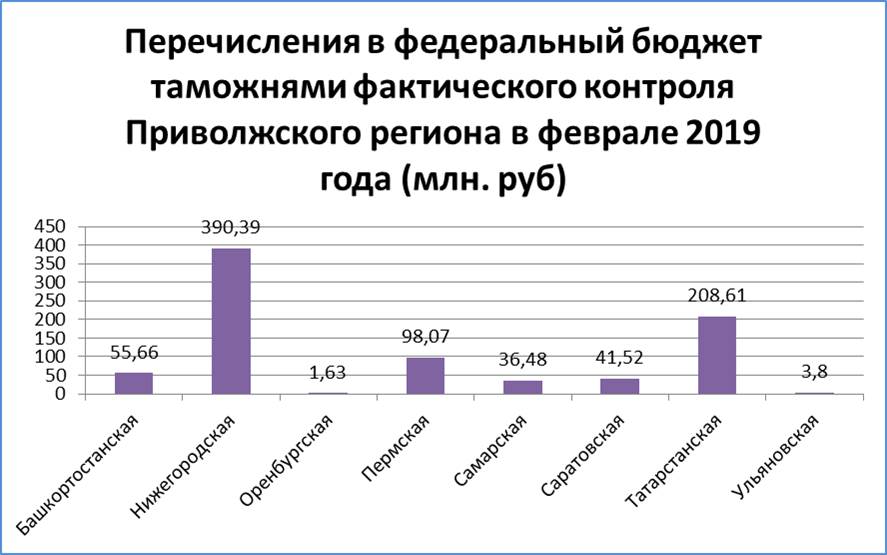 За 2018 год наибольшее количество экспертиз было назначено Татарстанской, Нижегородской, Самарской таможнями. Из переданных Нижегородской таможней образцов в 103 случаях выявлены нарушения, возбуждено 27 дел об административных правонарушениях, 1 уголовное дело.