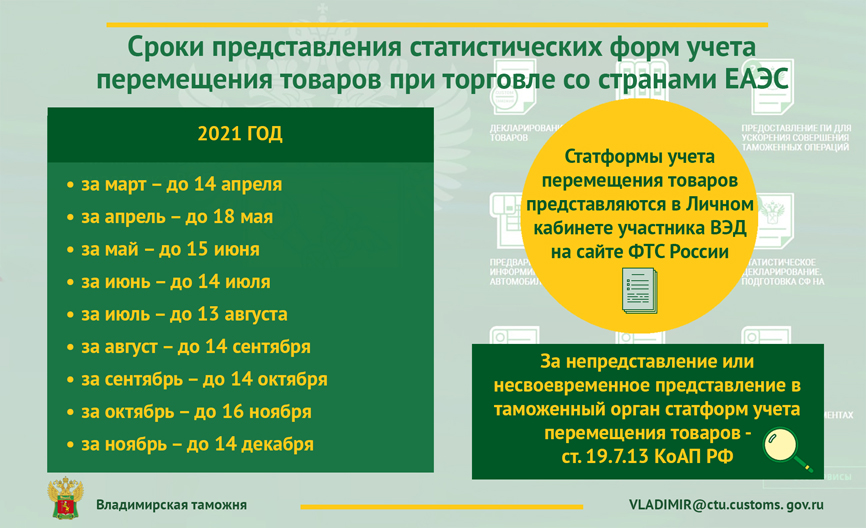 Дополнительно информируем, что вебинар ФТС России: «Статистическое декларирование: изменения законодательства» перенесен с 4 марта 2021 года на 29 марта 2021 г. Вопросы к вебинару также можно направить через сайт ФТС России, заполнив форму.