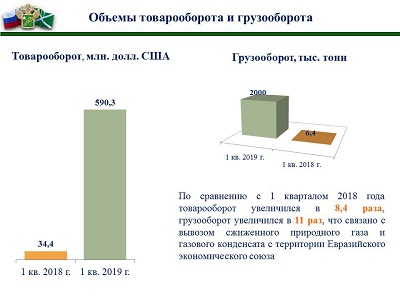 Объем запрещенных к ввозу в Российскую Федерацию составил 20 тыс. тонн, в том числе 0,8 тыс. тонн санкционной продукции. В сопредельные государства возвращено 18 тыс. тонн товаров, что на 41% превышает показатель 2018 года. При этом более чем в 2 раза сократился объем уничтоженных товаров: с 1,8 тыс. тонн в 1 квартале 2018 года до 0,8 тыс. тонн в 1 квартале 2019 года.