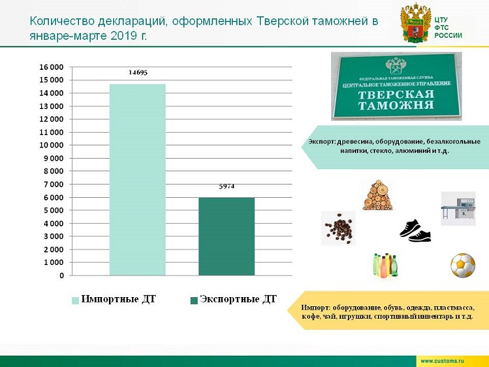 За три месяца 2019 года УТУ перечислило в федеральный бюджет почти 16,5 миллиардов рублей. На территории УрФО внешнюю торговлю ведут 1900 юридических лиц. За первые два месяца они оформили 25,9 тыс. деклараций на товары.