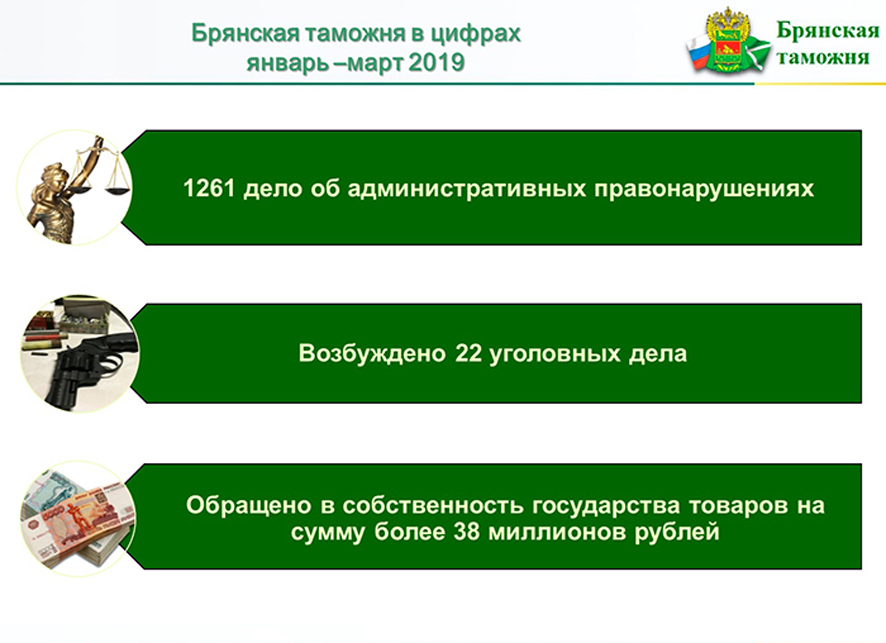 Всего в 1 квартале 2019 года подразделениями таможенного контроля после выпуска товаров проверено 418 юридических лиц, в деятельности которых выявлено более 2 тыс. нарушений. Возбуждено 1345 дел об АП и 53 уголовных дела. В федеральный бюджет перечислено 1,3 млрд руб. таможенных платежей, пеней, штрафов.