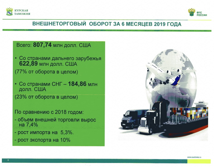 В первом полугодии 2019 года Кингисеппской таможней перечислено в федеральный бюджет на сумму 18 783,383 млн. рублей таможенных и иных платежей. По сравнению с прошлым годом объемы взимания таможенных платежей увеличились на 43 %.