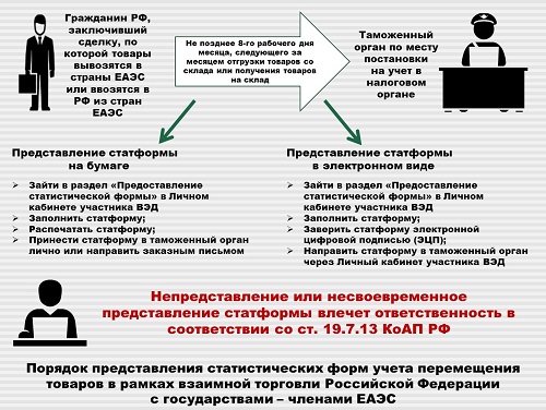 Во избежание возможных негативных последствий призываем всех участников взаимной торговли Российской Федерации с государствами - членами Евразийского экономического союза своевременно представлять в таможенные органы статистические формы учета перемещения товаров, содержащие полную и достоверную информацию.