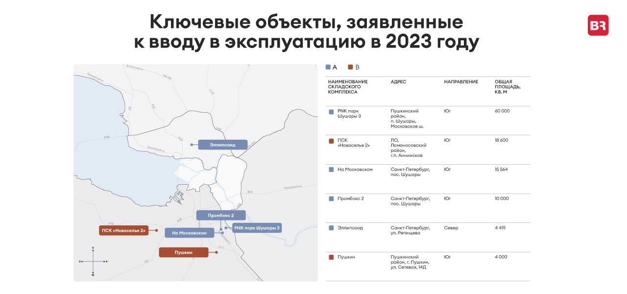 Среди крупнейших сделок первых трех кварталов текущего года – уже упомянутые BTS-аренда Ozon 117 451 кв. м на территории логопарка в Янино, а также аренда готового склада площадью 41 472 кв. м в индустриальном парке «PNK Парк Шушары 3». В рамках ПМЭФ 2023 было анонсировано строительство еще одного склада для Ozon площадью 117,5 тыс. кв. м в деревне Порошкино, строительство которого планируется завершить к 2024 года.