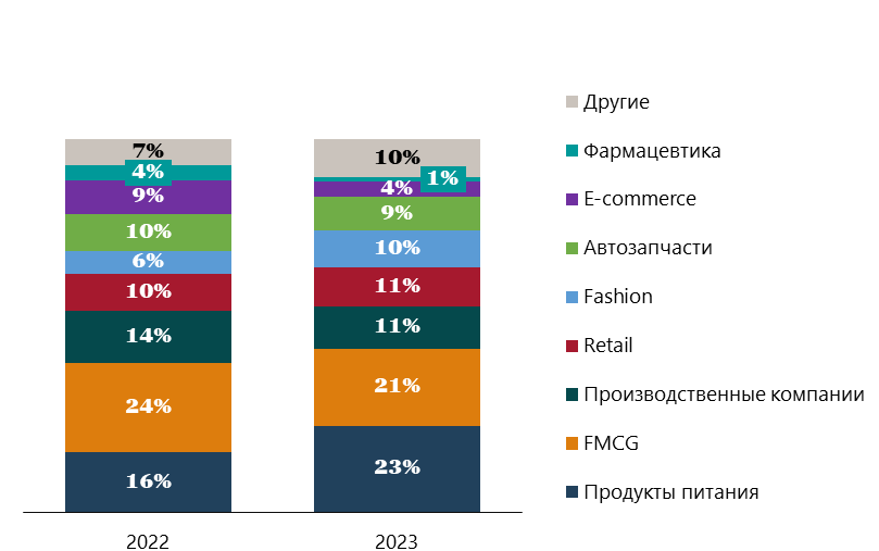 Среди драйверов спроса необходимо отметить также производителей и дистрибьюторов non-food, их доля в структуре поглощения составила 26%. Суммарно компании этих сегментов бизнеса заняли 172 310 кв. м.